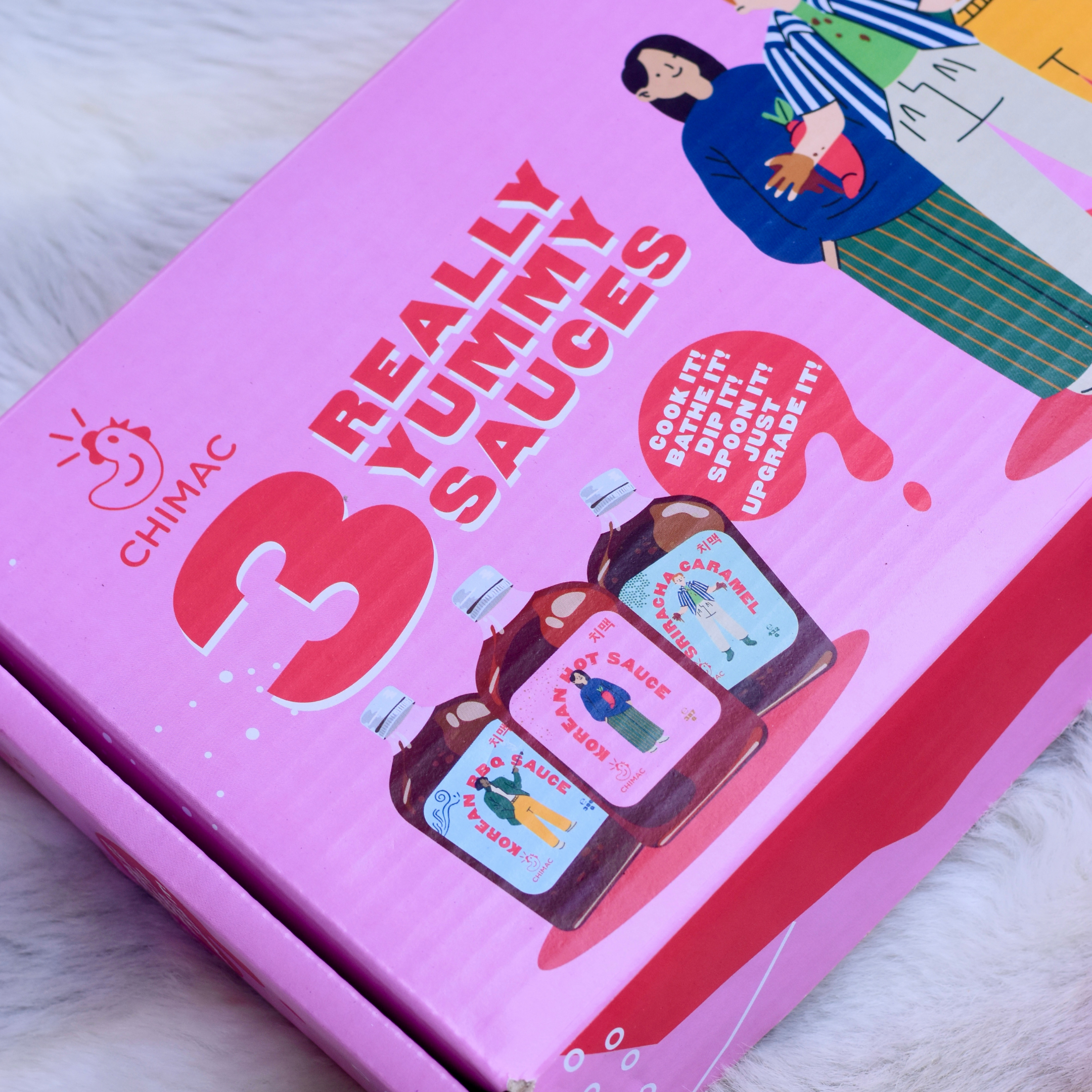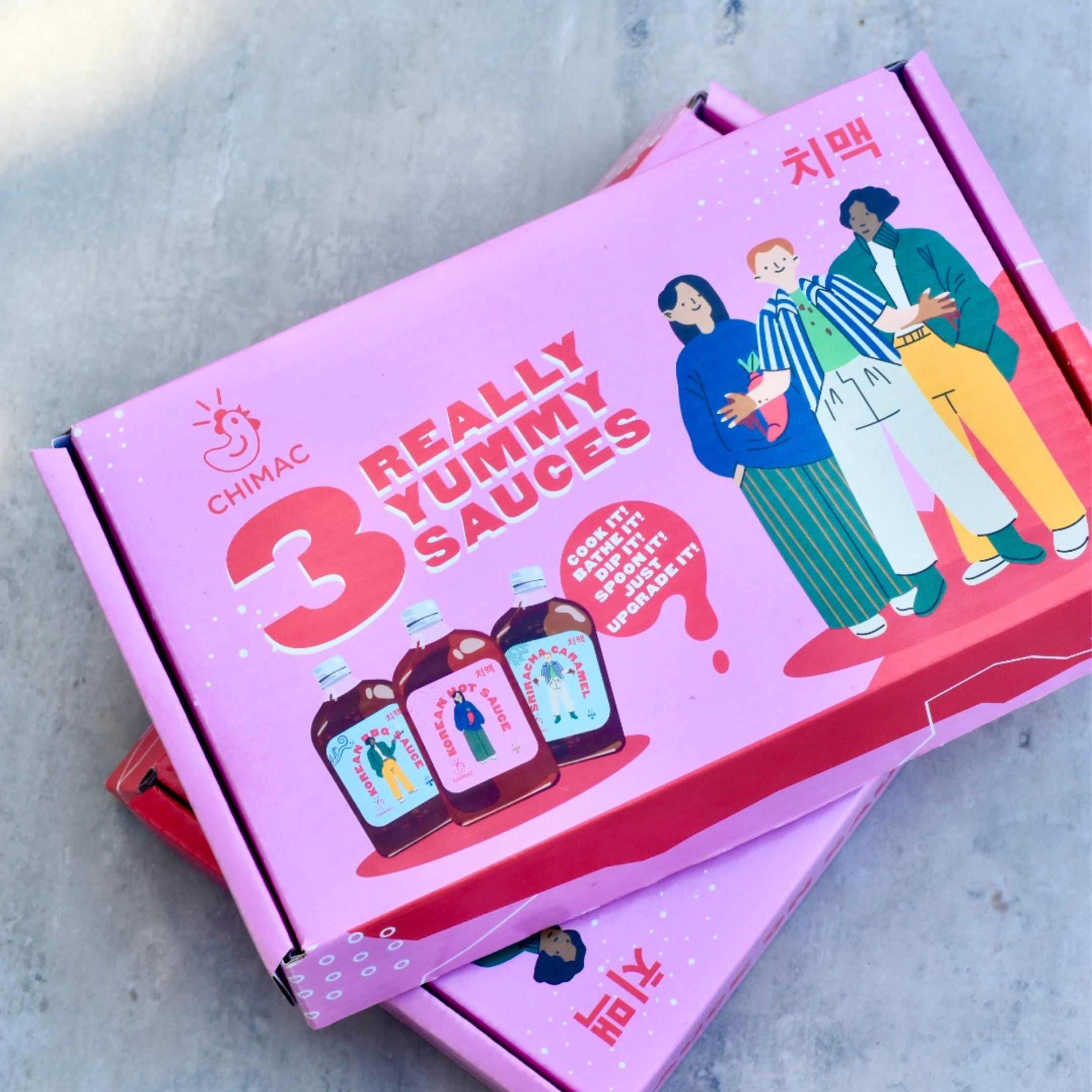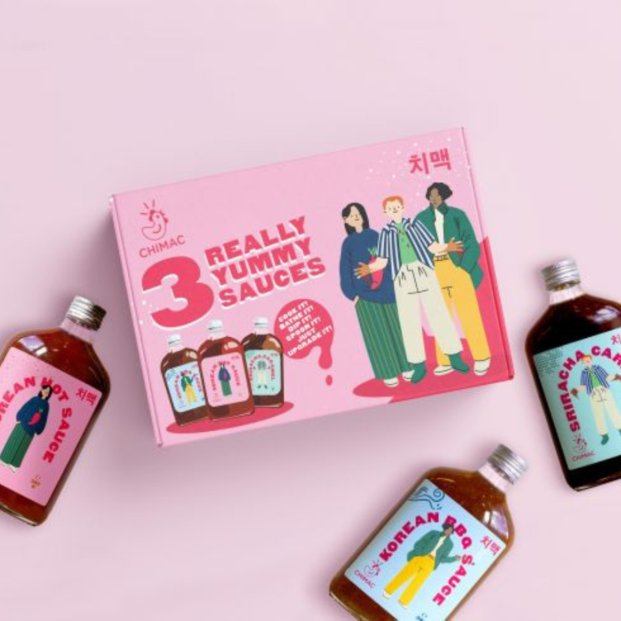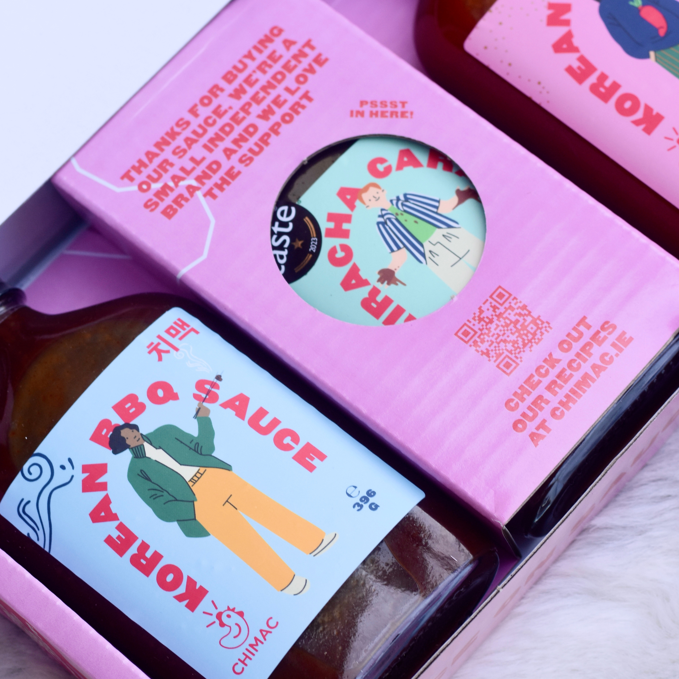 Enjoy a set of three signature Chimac Korean inspired sauces. Dreamt up in the kitchen of our Dublin restaurant, each sauce is bold, punchy and packed with flavour. You'll recieve one each of our 350ml sauce bottles - the sweet but spicy Sriracha Caramel, our not-too-hot Korean Hot Sauce and last but not least, a Chimac K-BBQ sauce. Perfect for dunking or dipping, they're also the perfect ingredient in a simple stirfry, or meat marinade.